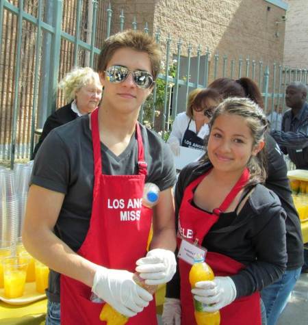 Actor Billy Unger and Actress Isabella Rae Thomas serving drinks at the Los Angeles Mission