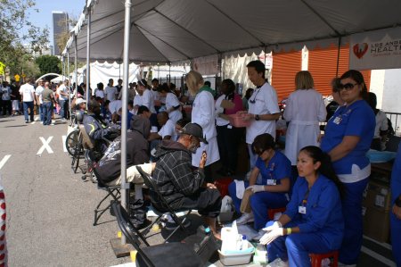 Those in need come and get their feet cleaned on Good Friday at the Los Angeles Mission