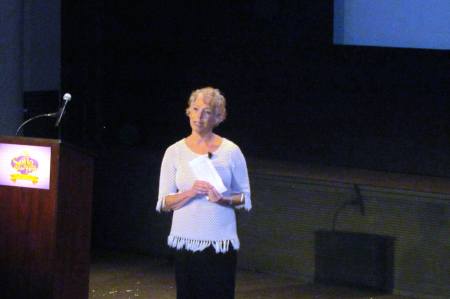 Senior Vice President, Original Programming and General Manager, Disney Junior Worldwide Nancy Kantor greets the guests before viewing Sofia the First at Walt Disney Studios